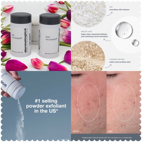 🌼 Bột Tẩy Tế bào Chết Dermalogica giúp đạt được làn da tươi sáng, mịn màng hơn. Bột được làm từ Gạo sẽ kích hoạt khi tiếp xúc với nước, giải phóng enzym từ Đu Đủ, Gạo và Salicylic Acid giúp đánh bóng cho làn da hoàn hảo. Hợp chất làm sáng da từ Axit Phytic từ Cám gạo, Trà trắng và Cam thảo giúp cân bằng màu da không đồng đều, trong khi hỗn hợp siêu dịu từ Keo yến mạch và Allantoin giúp dịu lại làn da. Sản phẩm đủ nhẹ dùng hàng ngày.