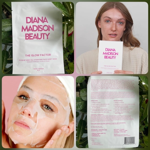 Mặt Nạ Diana Madison Beauty The Glow Factor Rosehip Seed Oil Hydrating Face Sheet Mask